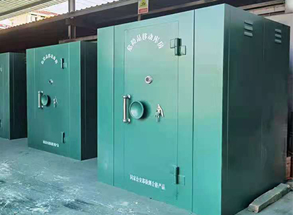 1、移动炸药库采用全钢材质制造,机械锁具把关,具极佳防盗性能(防火性能只有活动炸药库具备),符合国家公安部民爆器材的存放要求。